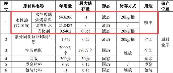 本项目使用大流量低压力(HVLP)喷枪喷涂,参考《涂装工艺及车间设计手册》(傅绍燕编著,机械工业出版社,2012年出版)P204,大流量低压力(HVLP)涂料利用率大于65%;参考《涂装工艺与设备》(冯立明,化学工业出版社2013年版),空气喷涂方式,对于管状态、小件的物料,涂料利用率为15%-30%。综合考虑两份参考文献,结合项目喷涂物料,玻璃本身属于不规则的结构,故上漆率保守取30%计算。本项目用漆量计算如下表。
