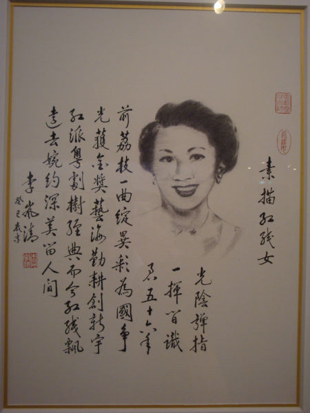 回忆道,“她在联欢节的文艺比赛中唱了一曲粤曲《荔枝颂》,在国际舞台上获得了金奖,我们当时都感到很自豪。”此后,两人直至2000年才又欣然重聚。“那时中央分期分批邀请做出突出贡献的各界专家到北戴河休假,文艺界是2000年去的,当时我代表党中央和国务院来接待他们。”相隔43年之后重又见面,感慨,“那时她已是满头银髮,但仍然神采奕奕,我们还讲起多年前这段往事。”去年底,当听说红线女离世,马上决定画一幅像来缅怀她,“我还特意找了一张她年轻时的照片,大概就是她30多岁时的样子,来照?画。”